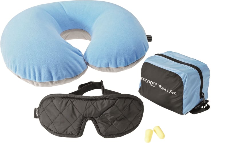 Het Travelset Ultralight, 3 delig, in de kleur lichtblauw/zwart is de perfecte metgezel voor iedere reis. Deze set bestaat uit een comfortabel kussen, een slaapmasker en oordopjes, allemaal ontworpen voor maximaal comfort en gemak onderweg.